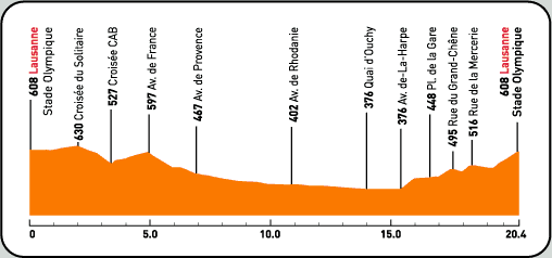 Tappa 5 DOMENICA 30 APRILE CORONOMETRO Lausanne-LAUSANNE 20.4km Prima partenza: 12.05 Ultimo arrivo: 15.45 Dislivello: 319 metri